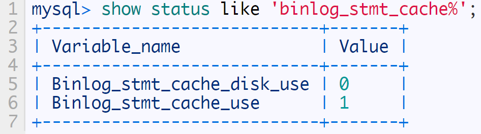 Binlog_stmt_cache_use:缓冲区存放binlog的次数