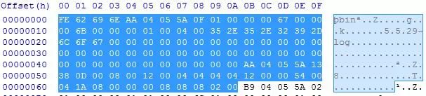 使用十六进制方式打开文件bin-log.000001,以下是Format_desc_Event的十六进制代码: