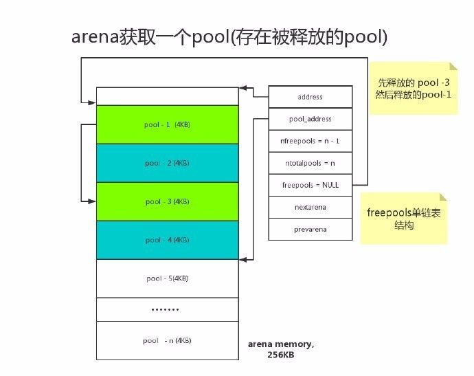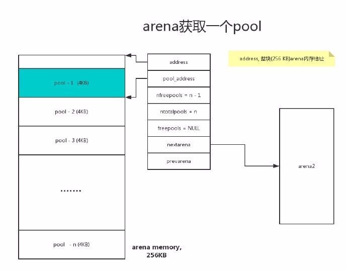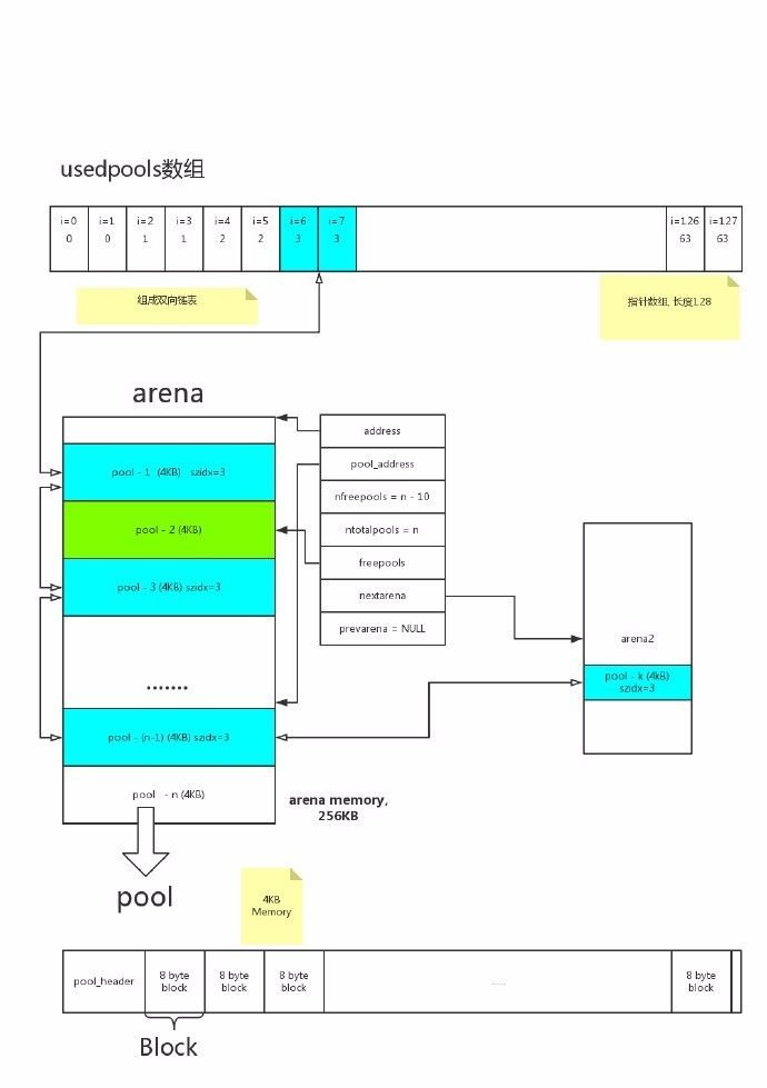 具体使用中, python并不直接与arenas和arena打交道, 当Python申请内存时, 最基本的操作单元并不是arena, 而是pool