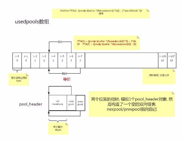 #define PTA(x) ((poolp )((uchar *)&(usedpools[2*(x)]) – 2*sizeof(block *)))