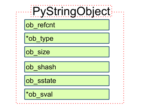 PyStringObject是变长对象, 比定长对象多了一个ob_size字段