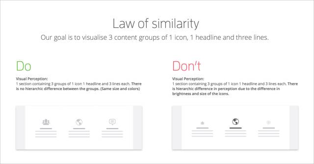 “相似性法则”表明外表相近的元素会被视为一组。也就是说如果有着相同功能、意义或层级的元素应当视为整体。
