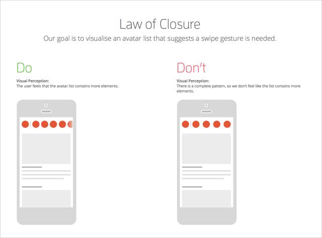 “封闭性法则”意为当我们设计一个缺失或者断开部分的复杂页面时,会寻找一个连续、平滑的样式。换句话,我们有意识的去填补空白。