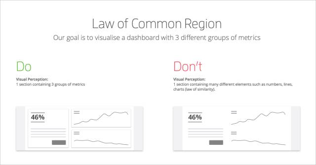 Stephen Palmer和Irvin Rock在1999年提出「连续性法则」,即如果元素共享具有明确界限的区域,则它们倾向于分成一个组。在设计中我们经常使用卡片式来对相关元素组合起来。