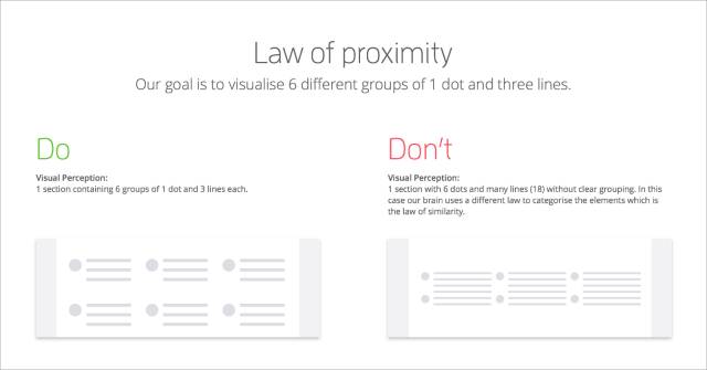 “接近性法则”指出当对象彼此接近时,他们往往被认为是一个整体。基本上相近是在一起的。如果我们使用清晰的结构和视觉层次,我们将不再被有限的用户认知所指责,所以他们才能快速辨认和给出反应。