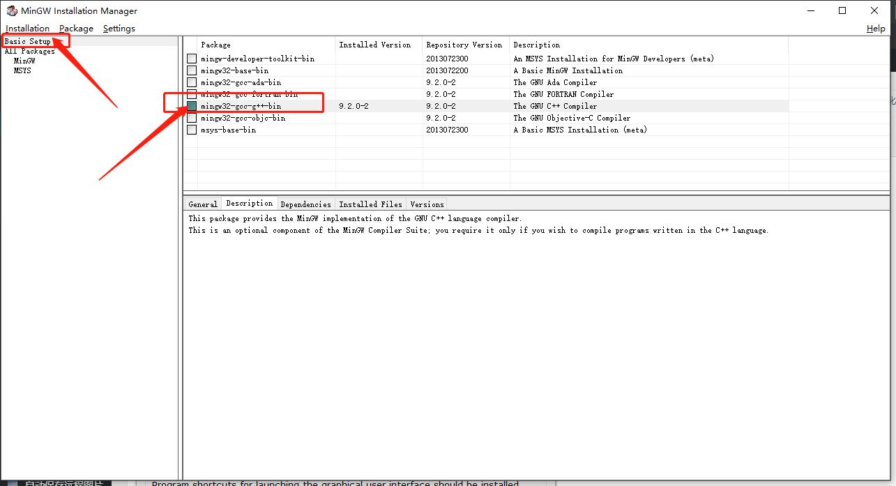 安装好后打开,确认网络正常后,点击basic setup然后选择gcc -g++